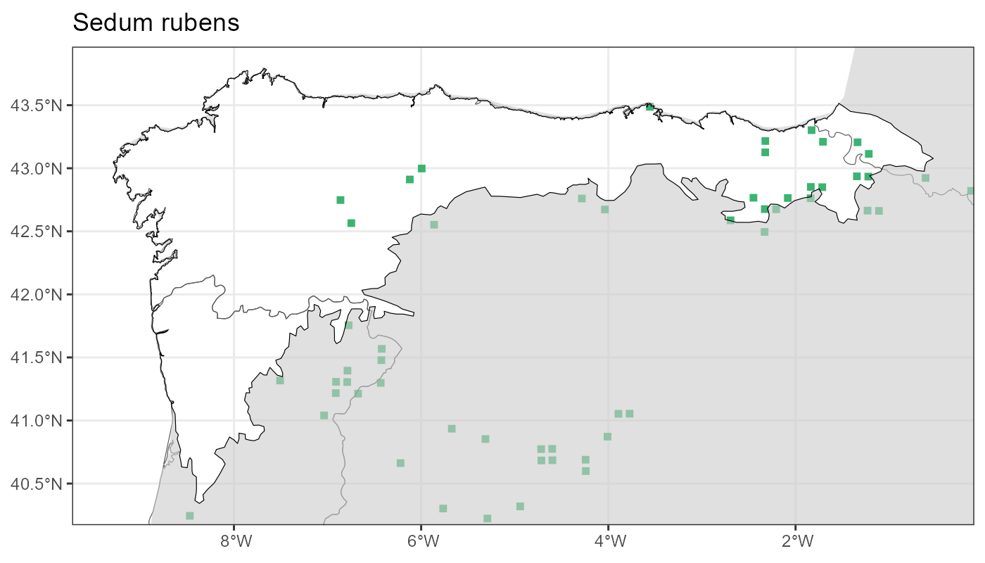 Localities (10 x 10 km) where the species has been recorded in the context of the study area. The complete distribution of the species in the Iberian Peninsula can be found in AFLIBER.