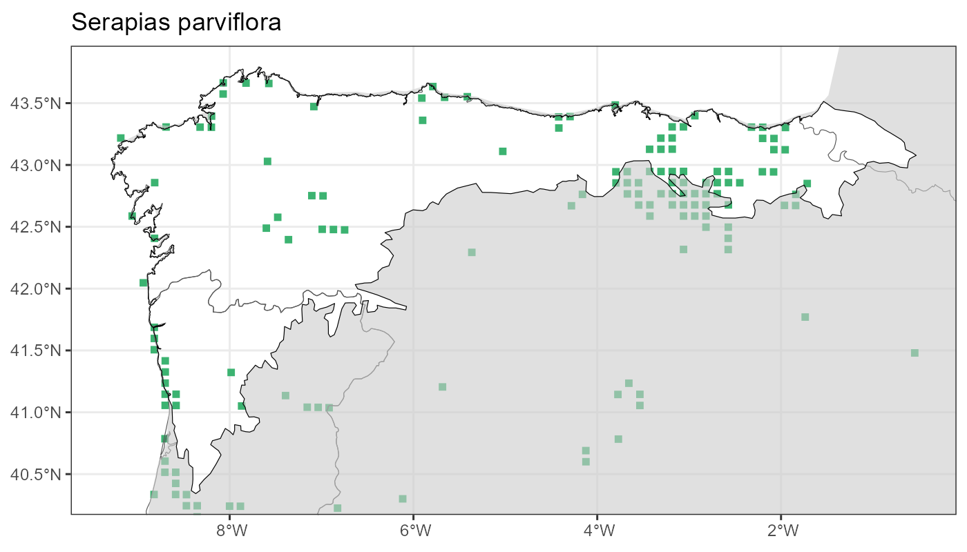 Localities (10 x 10 km) where the species has been recorded in the context of the study area. The complete distribution of the species in the Iberian Peninsula can be found in AFLIBER.