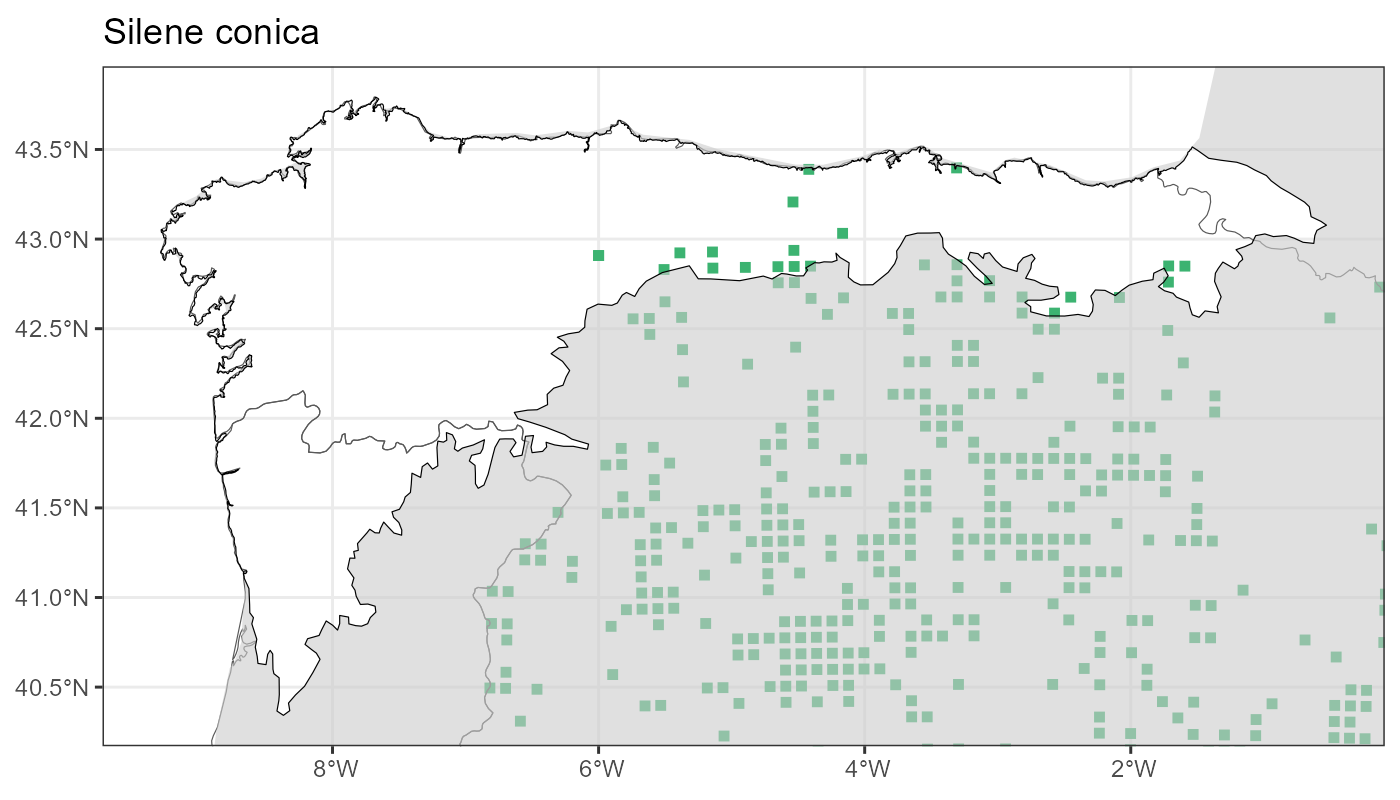 Localities (10 x 10 km) where the species has been recorded in the context of the study area. The complete distribution of the species in the Iberian Peninsula can be found in AFLIBER.