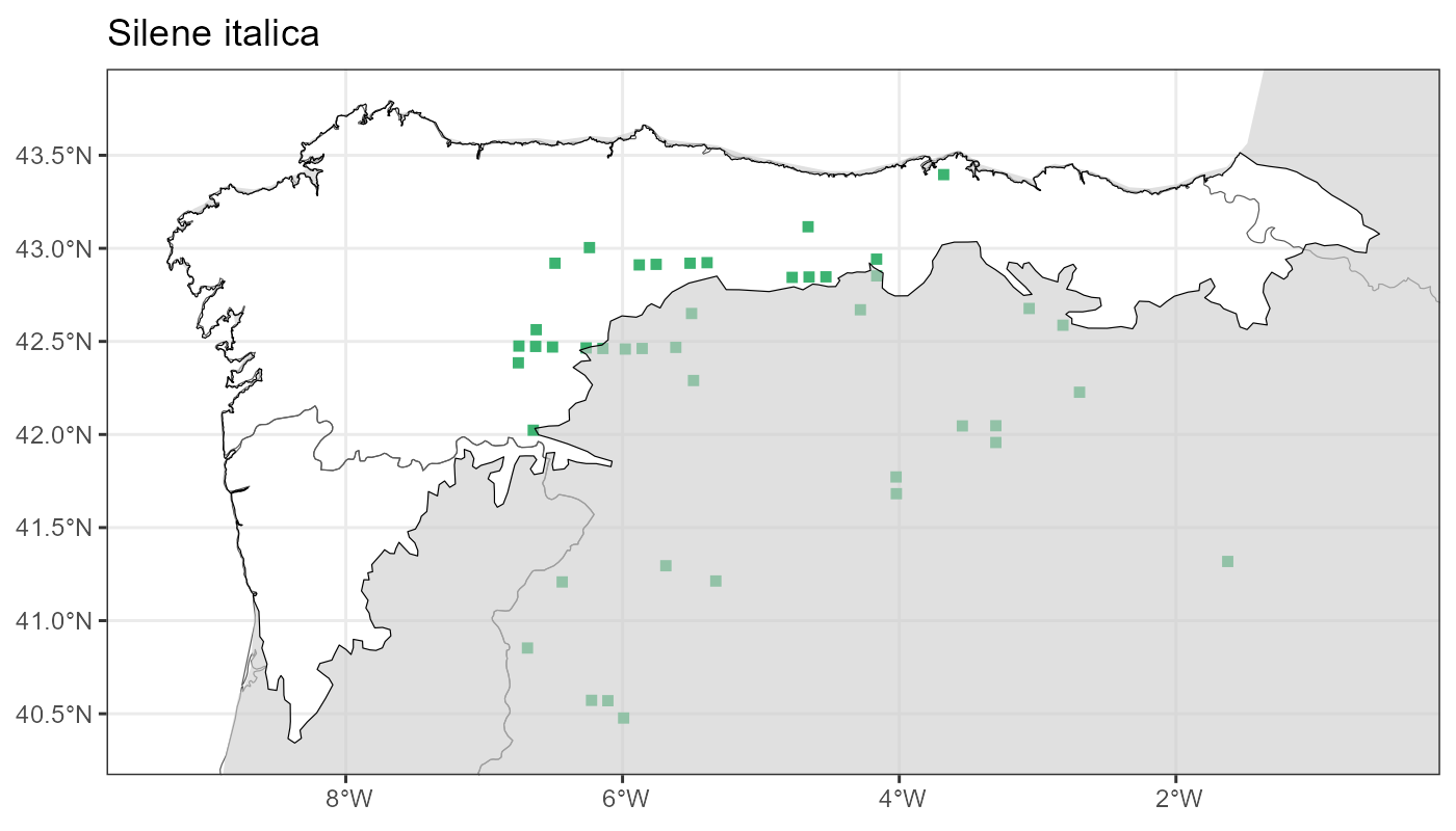 Localities (10 x 10 km) where the species has been recorded in the context of the study area. The complete distribution of the species in the Iberian Peninsula can be found in AFLIBER.