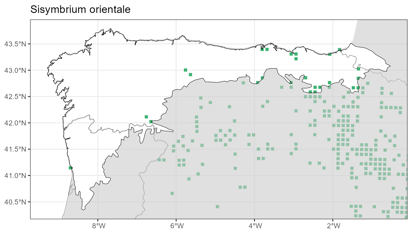 Localities (10 x 10 km) where the species has been recorded in the context of the study area. The complete distribution of the species in the Iberian Peninsula can be found in AFLIBER.