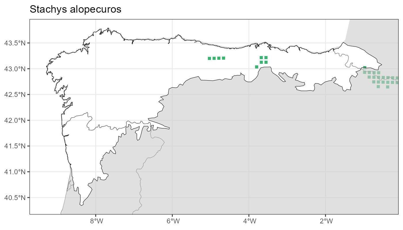Localities (10 x 10 km) where the species has been recorded in the context of the study area. The complete distribution of the species in the Iberian Peninsula can be found in AFLIBER.