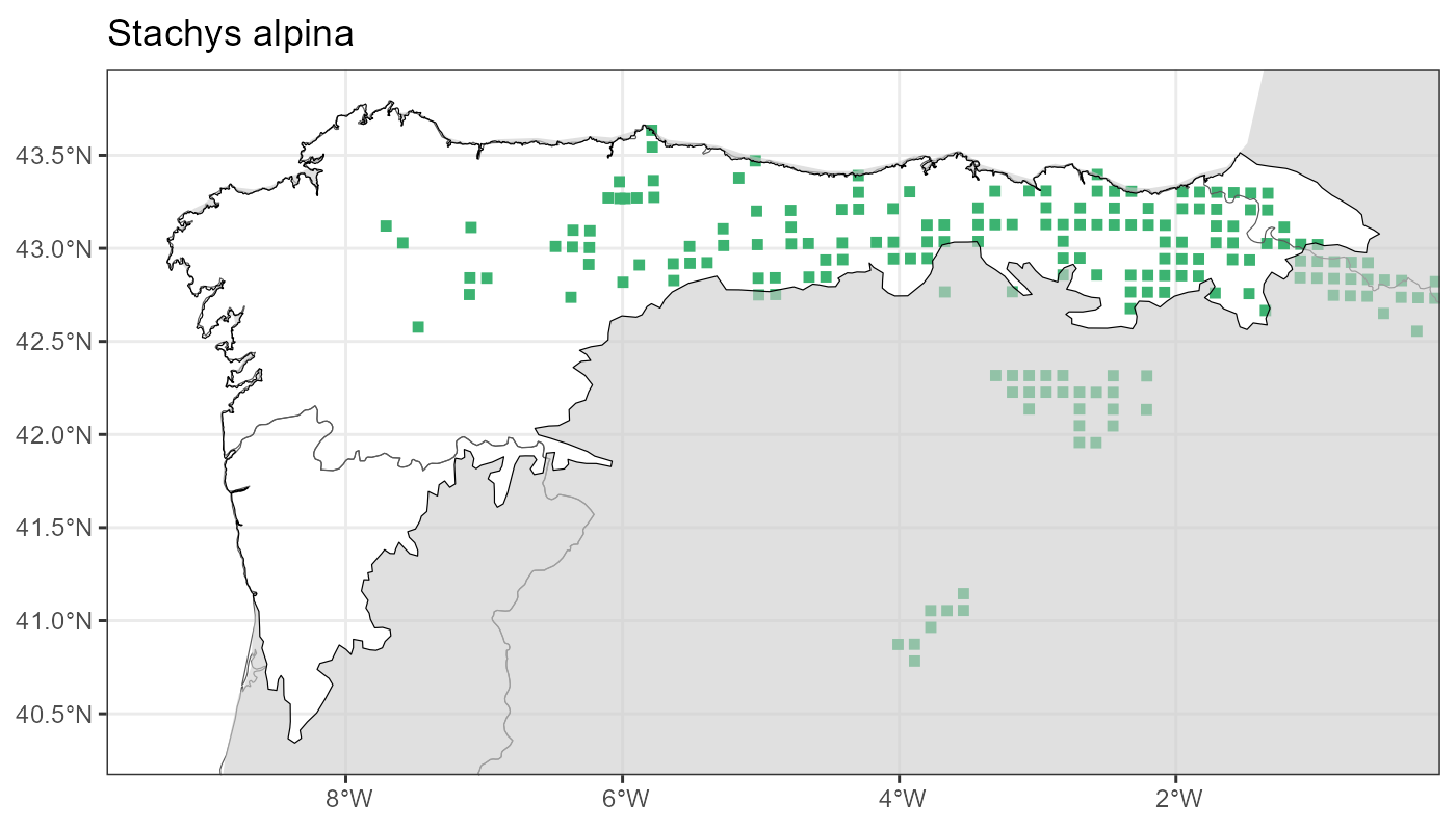 Localities (10 x 10 km) where the species has been recorded in the context of the study area. The complete distribution of the species in the Iberian Peninsula can be found in AFLIBER.