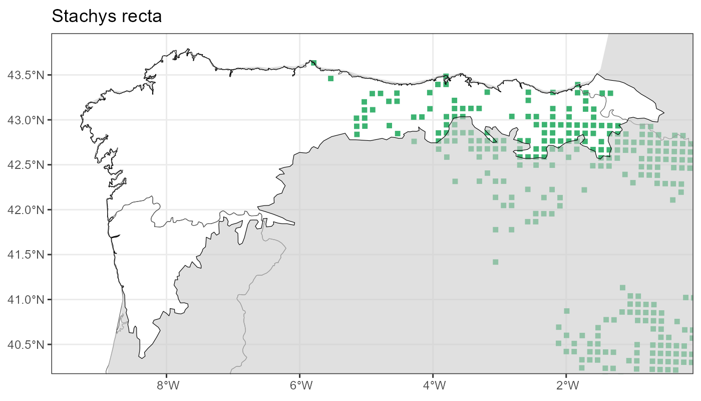 Localities (10 x 10 km) where the species has been recorded in the context of the study area. The complete distribution of the species in the Iberian Peninsula can be found in AFLIBER.