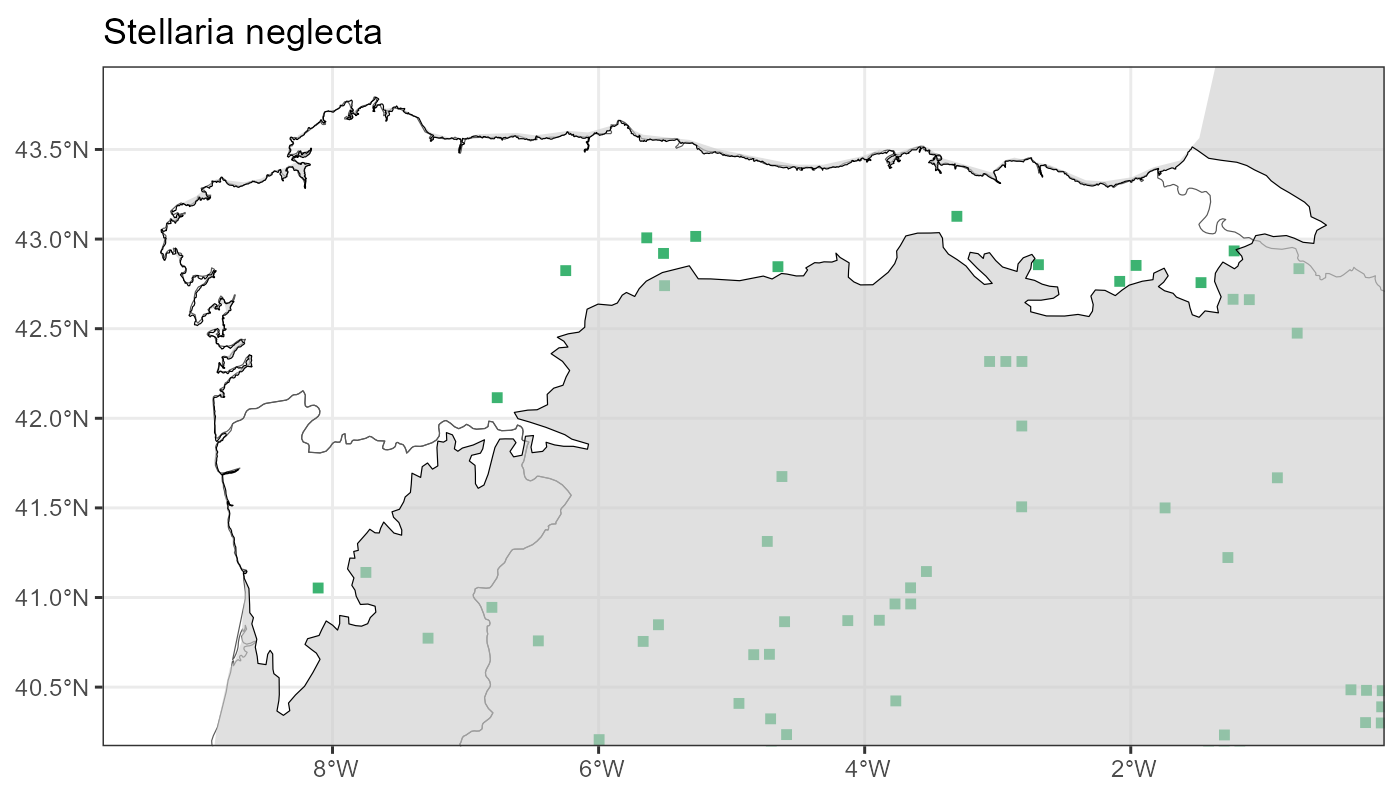 Localities (10 x 10 km) where the species has been recorded in the context of the study area. The complete distribution of the species in the Iberian Peninsula can be found in AFLIBER.