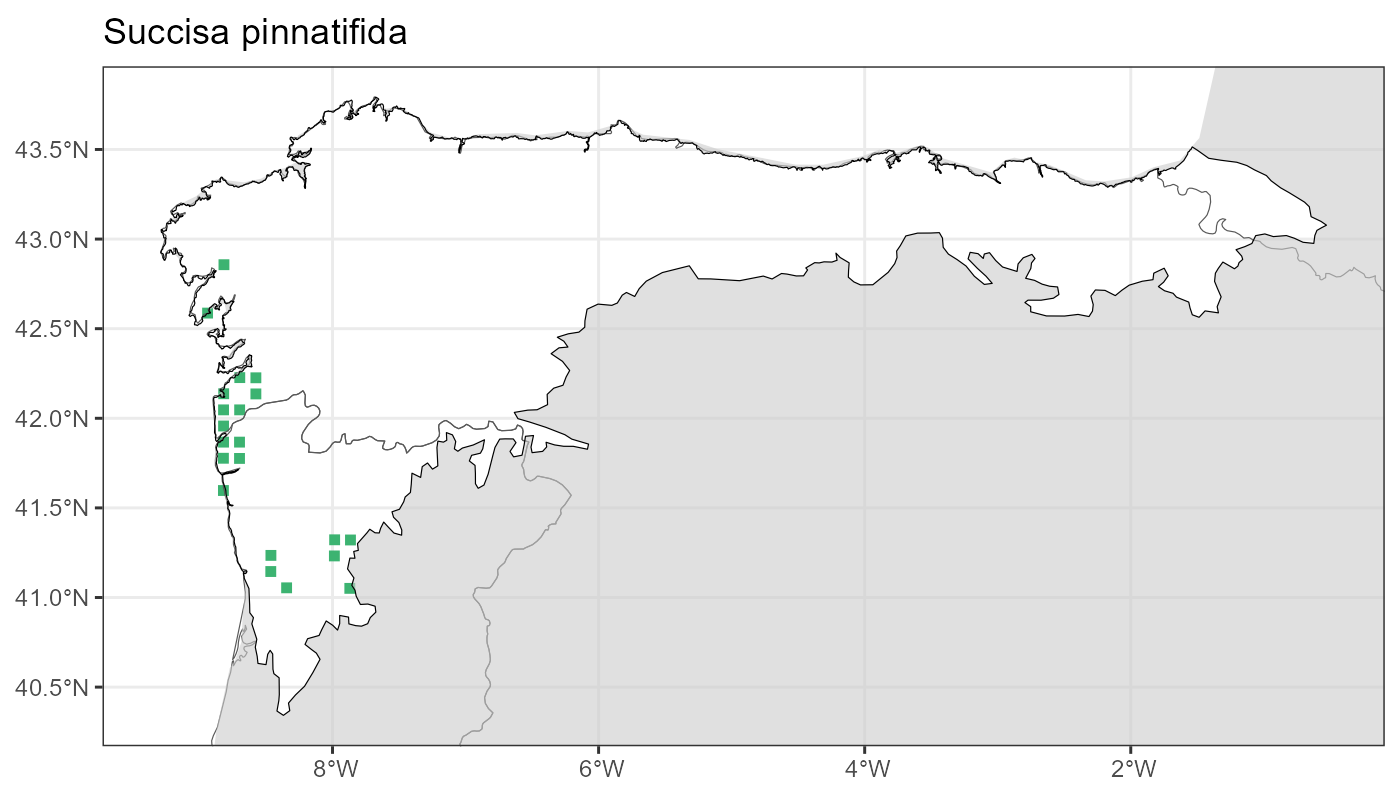 Localities (10 x 10 km) where the species has been recorded in the context of the study area. The complete distribution of the species in the Iberian Peninsula can be found in AFLIBER.