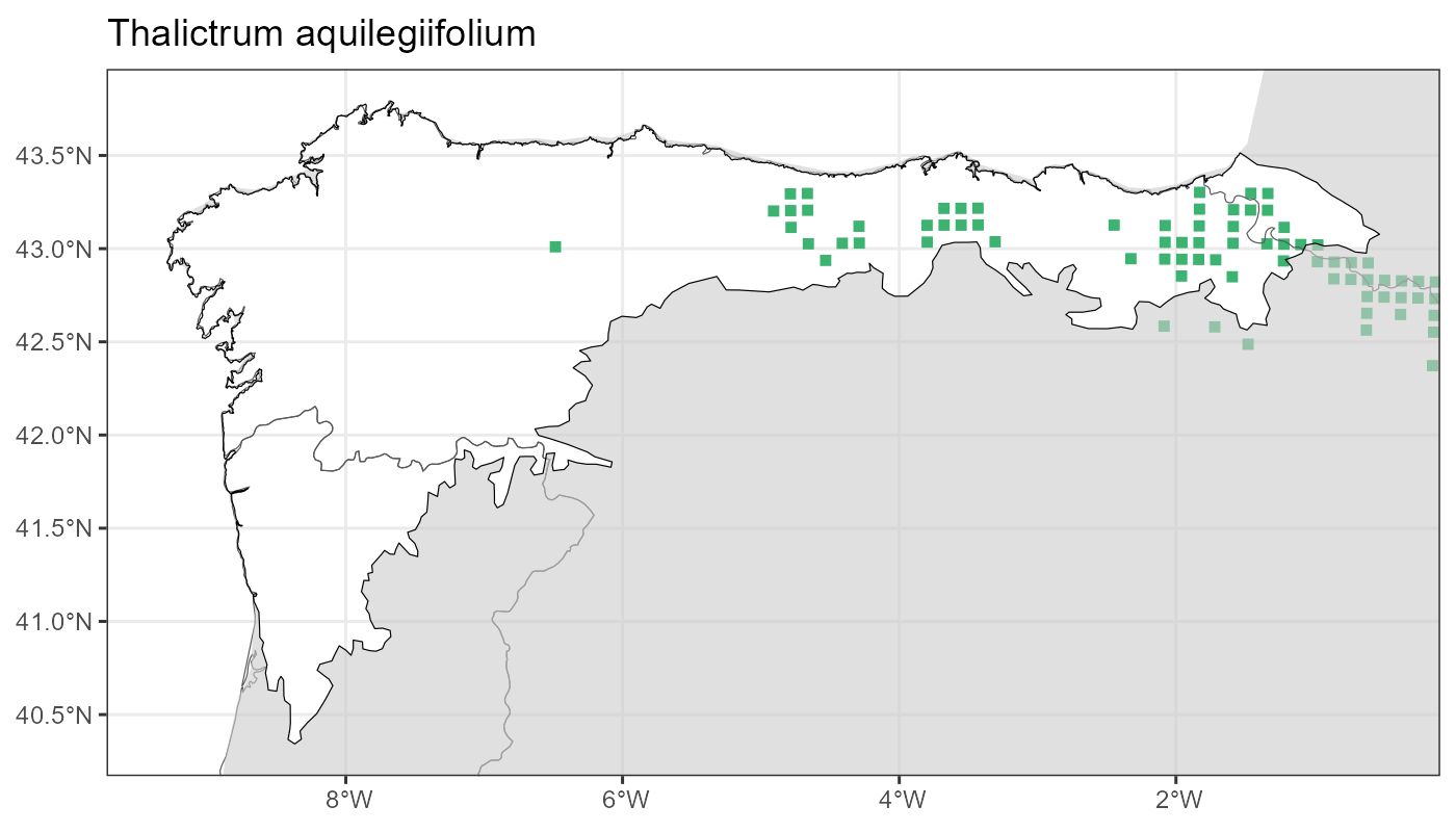 Localities (10 x 10 km) where the species has been recorded in the context of the study area. The complete distribution of the species in the Iberian Peninsula can be found in AFLIBER.