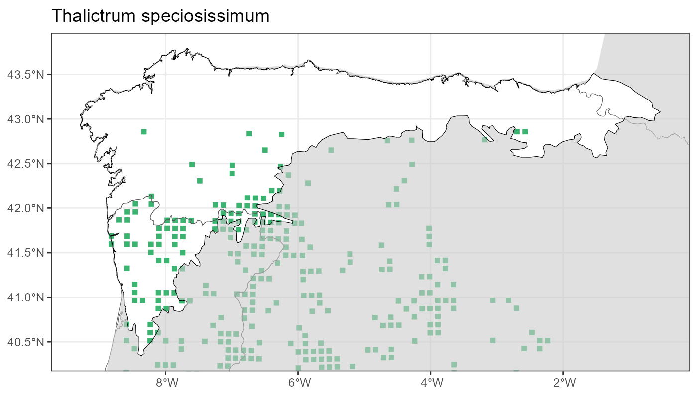 Localities (10 x 10 km) where the species has been recorded in the context of the study area. The complete distribution of the species in the Iberian Peninsula can be found in AFLIBER.