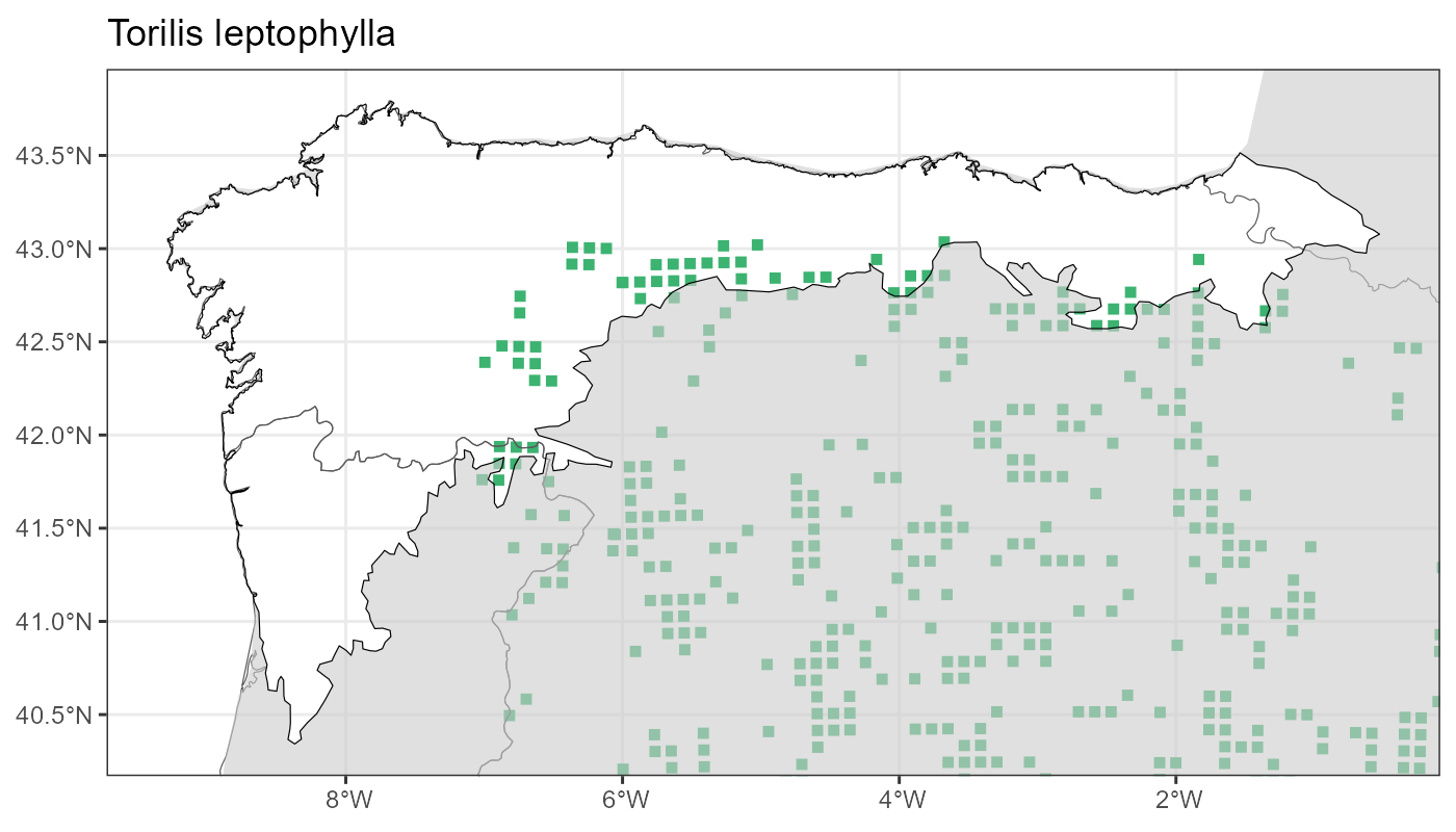 Localities (10 x 10 km) where the species has been recorded in the context of the study area. The complete distribution of the species in the Iberian Peninsula can be found in AFLIBER.