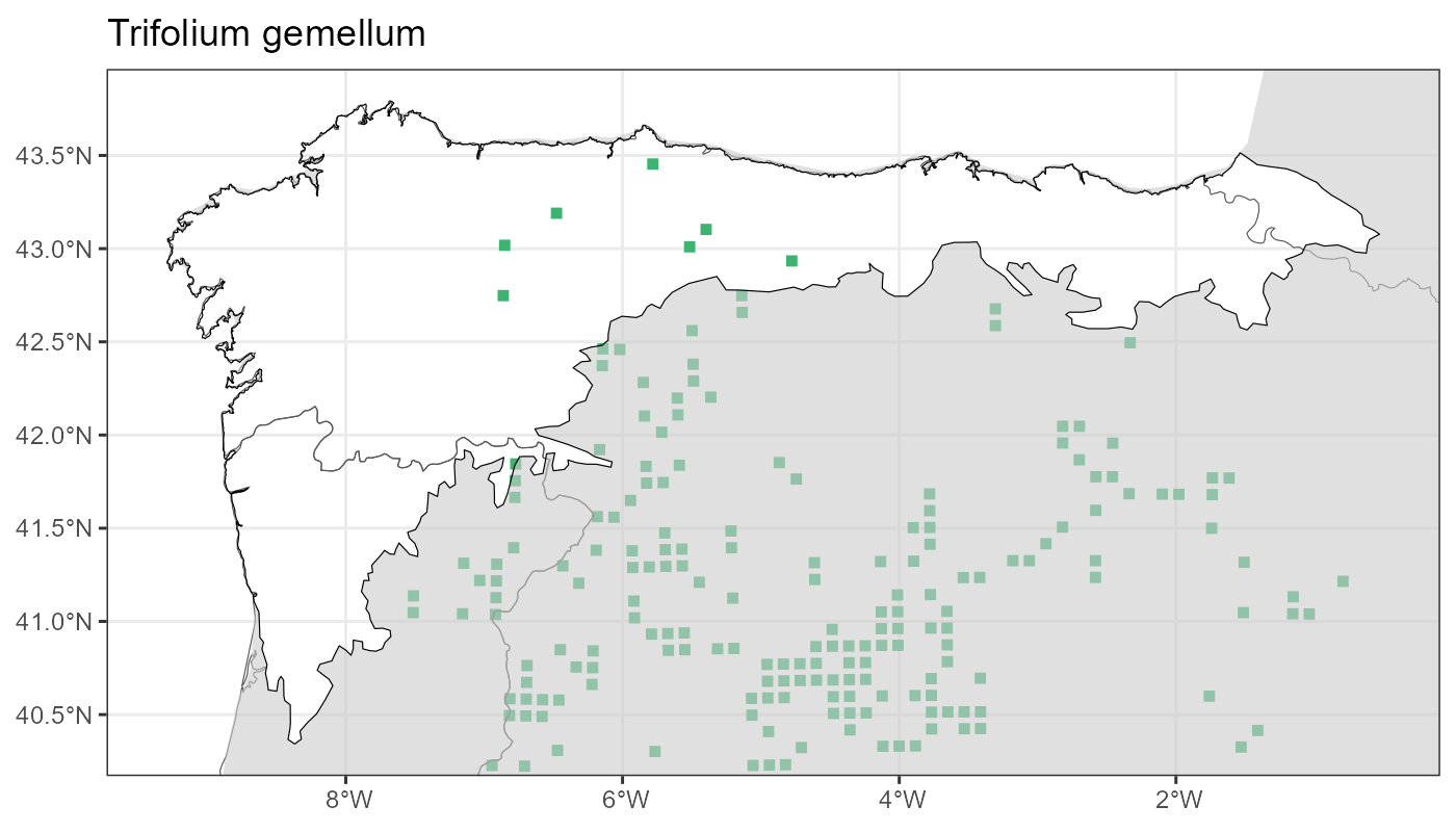 Localities (10 x 10 km) where the species has been recorded in the context of the study area. The complete distribution of the species in the Iberian Peninsula can be found in AFLIBER.