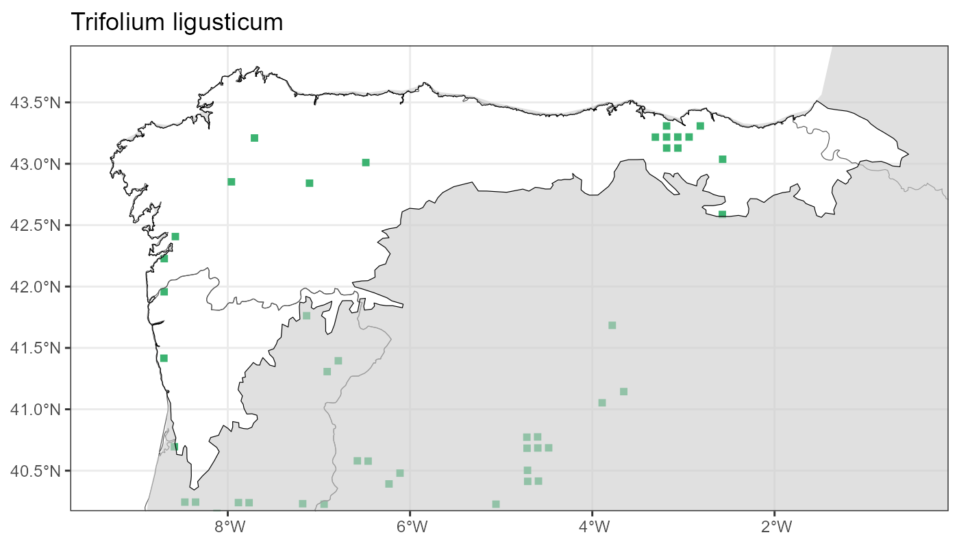 Localities (10 x 10 km) where the species has been recorded in the context of the study area. The complete distribution of the species in the Iberian Peninsula can be found in AFLIBER.