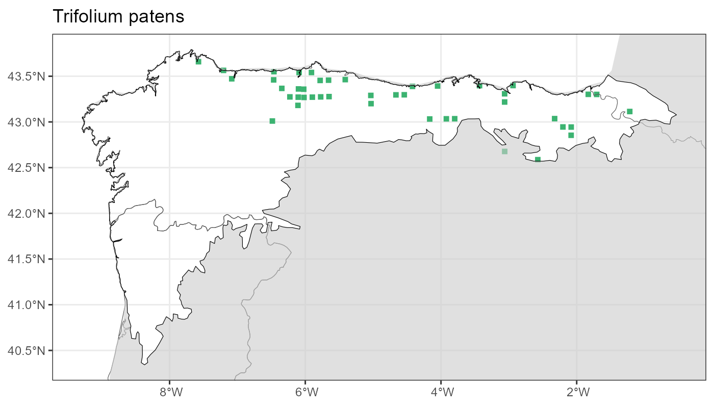 Localities (10 x 10 km) where the species has been recorded in the context of the study area. The complete distribution of the species in the Iberian Peninsula can be found in AFLIBER.