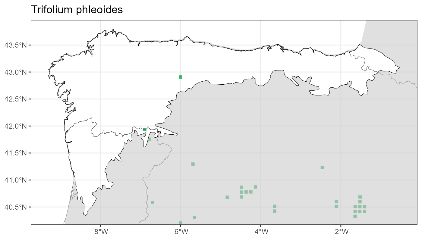 Localities (10 x 10 km) where the species has been recorded in the context of the study area. The complete distribution of the species in the Iberian Peninsula can be found in AFLIBER.