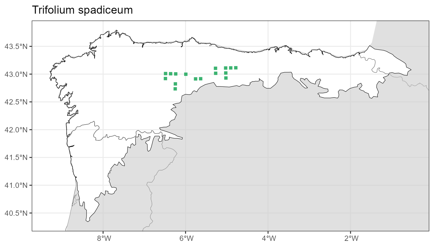 Localities (10 x 10 km) where the species has been recorded in the context of the study area. The complete distribution of the species in the Iberian Peninsula can be found in AFLIBER.