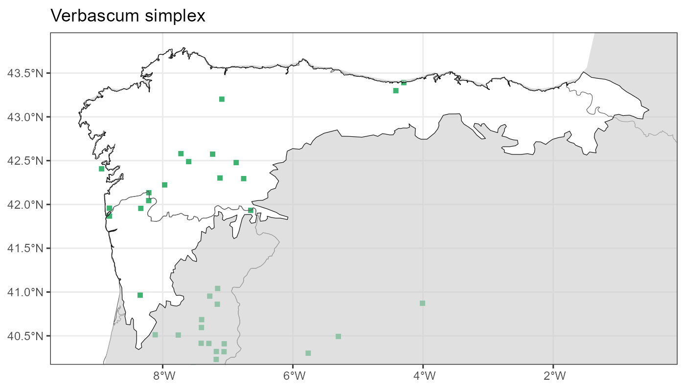 Localities (10 x 10 km) where the species has been recorded in the context of the study area. The complete distribution of the species in the Iberian Peninsula can be found in AFLIBER.