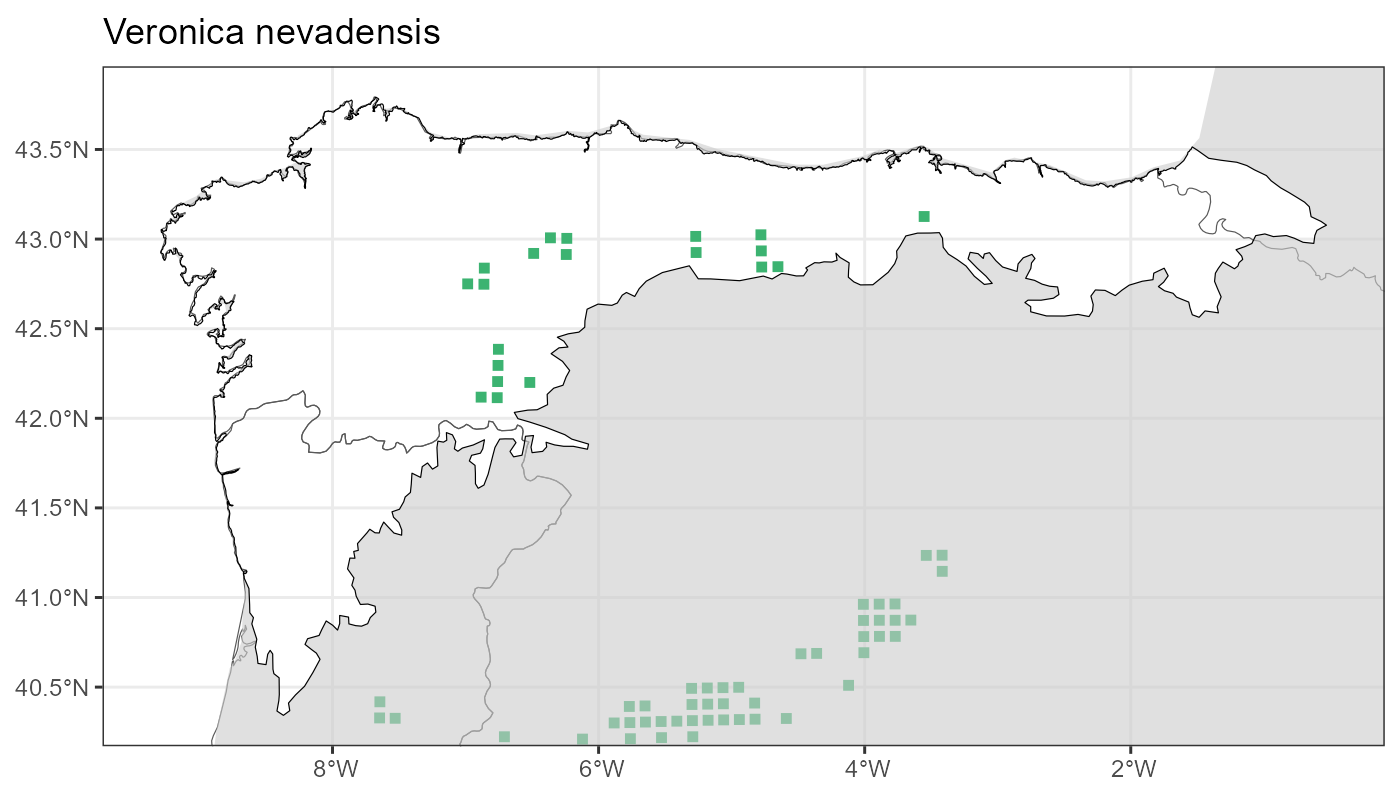 Localities (10 x 10 km) where the species has been recorded in the context of the study area. The complete distribution of the species in the Iberian Peninsula can be found in AFLIBER.