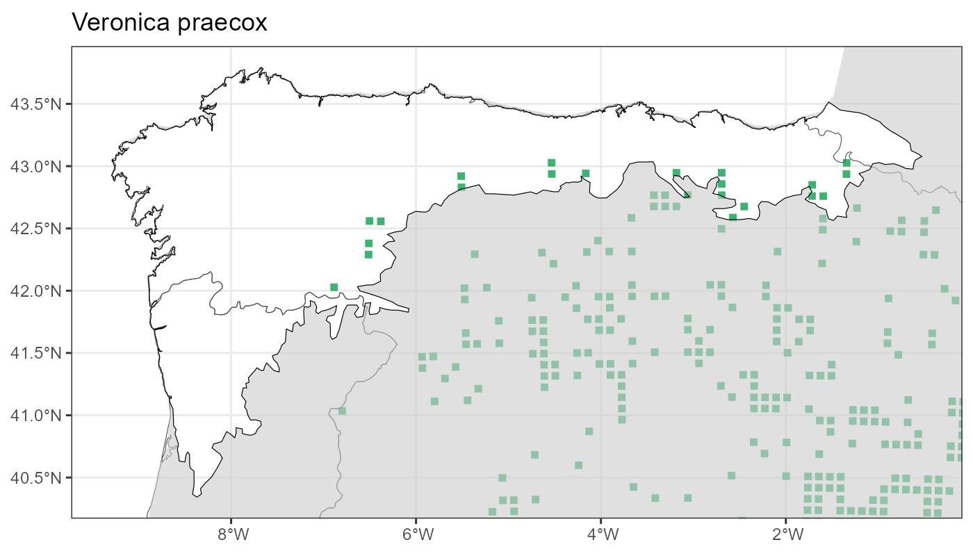 Localities (10 x 10 km) where the species has been recorded in the context of the study area. The complete distribution of the species in the Iberian Peninsula can be found in AFLIBER.
