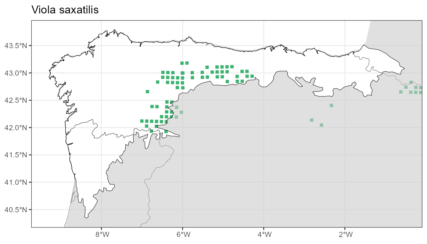 Localities (10 x 10 km) where the species has been recorded in the context of the study area. The complete distribution of the species in the Iberian Peninsula can be found in AFLIBER.