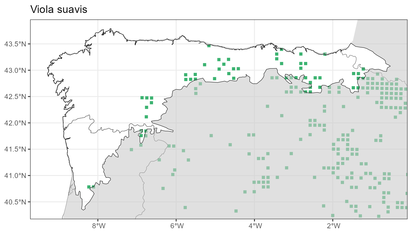 Localities (10 x 10 km) where the species has been recorded in the context of the study area. The complete distribution of the species in the Iberian Peninsula can be found in AFLIBER.