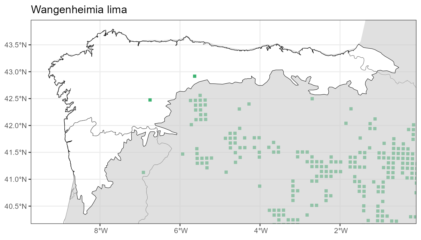 Localities (10 x 10 km) where the species has been recorded in the context of the study area. The complete distribution of the species in the Iberian Peninsula can be found in AFLIBER.