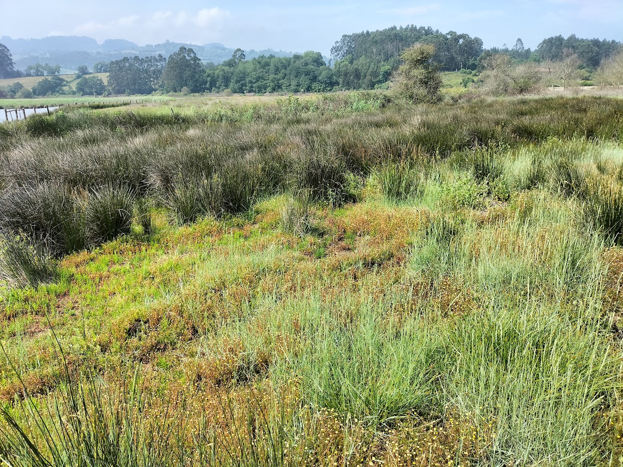 Densos herbazales y matorrales halófilos que colonizan las planicies estuarinas generadas por la retención, en un proceso sucesional retroalimentado, de sedimentos suspendidos durante los periodos de inundación en pleamar. En las fases maduras, la acumulación de sedimentos fijados por la vegetación alcanza suficiente altura como para que solo haya una breve inundación durante las mareas más vivas.