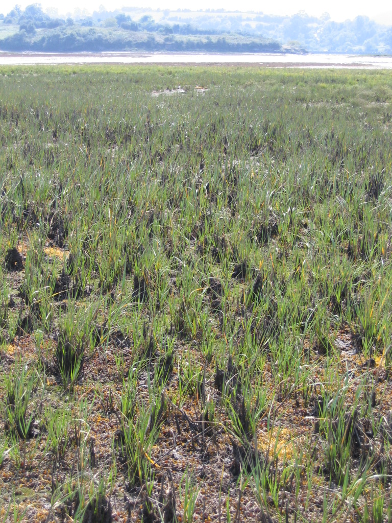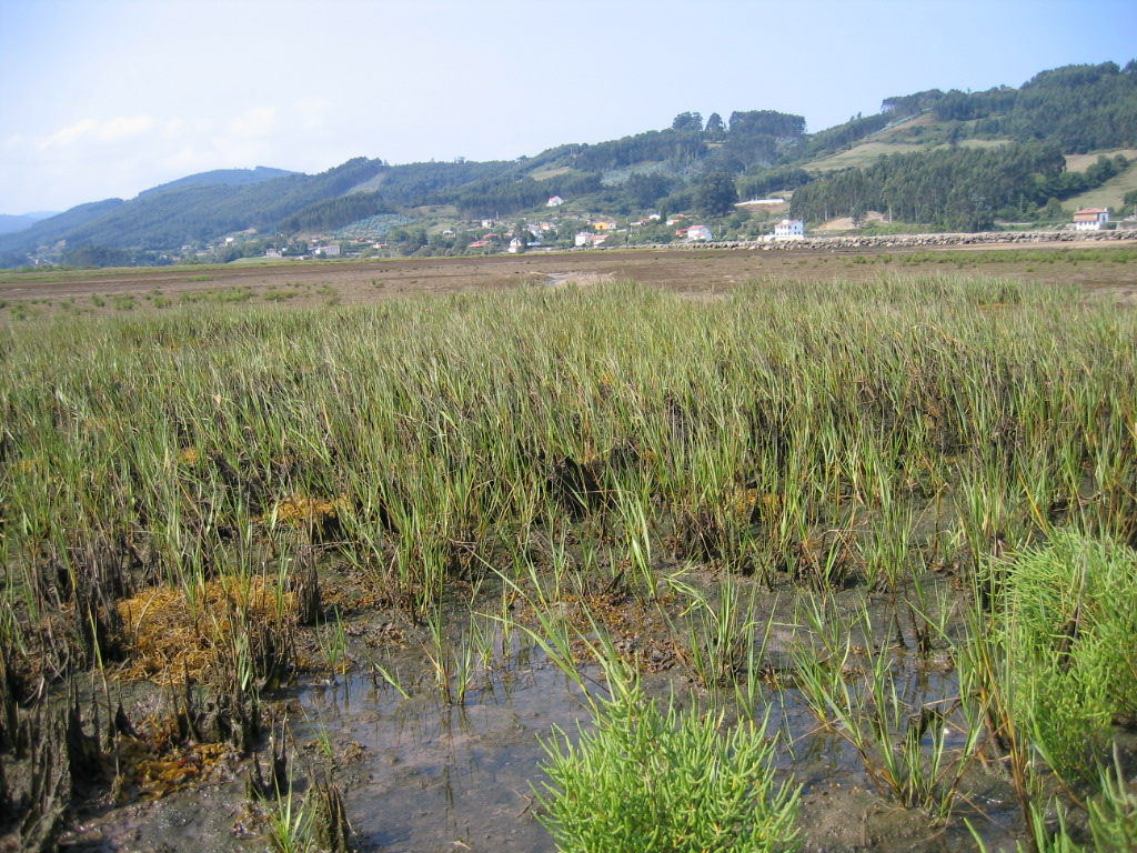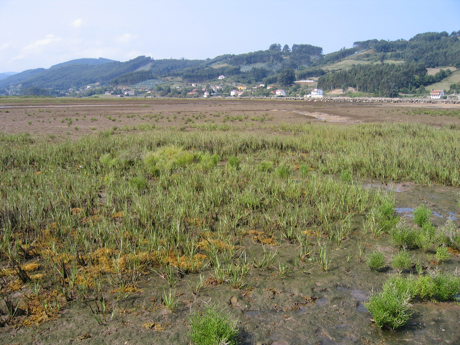 Comunidades discontinuas, halófilas, no hidrofíticas, compuestas por rodales clonales de plantas perennes como Spartina maritima y por anuales como Salicornia, que colonizan de manera pionera las franjas externas del sector fangoso intermareal (‘slikke’) o los claros que las riadas o los flujos mareales crean ocasionalmente en la vegetación estuarina más madura.