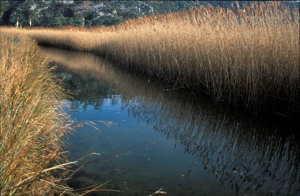 Humedales dominados por helófitos altos en aguas de mesotróficas a eútrofas, generalmente en las márgenes periódicamente emergidas de aguas estancadas o de curso lento.