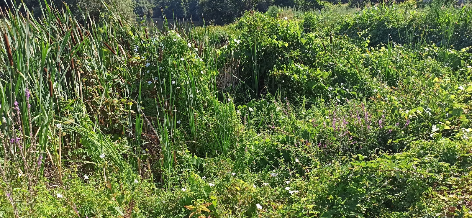 Pteridium aquilinum 60%, Mentha suaveolens 60%, Picris hieracioides 55%, Calystegia sepium 53%, Eupatorium cannabinum 52%, Arundo donax 48%, Silene latifolia 47%, Dactylis glomerata 42%, Angelica sylvestris 42%, Urtica dioica 40%, Brachypodium pinnatum 27%, Pentaglottis sempervirens 26%, Ranunculus repens 26%, Rubus ulmifolius 26%, Pulicaria dysenterica 26%, Holcus lanatus 24%, Lamium maculatum 23%, Daucus carota 23%, Mentha aquatica 19%, Chelidonium majus 18%, Centaurea debeauxii 18%, Sonchus oleraceus 18%, Agrostis capillaris 16%, Phytolacca americana 16%, Brachypodium sylvaticum 16%, Oxalis corniculata 16%, Solanum dulcamara 15%, Heracleum sphondylium 15%, Verbena officinalis 15%, Foeniculum vulgare 13%, Crepis capillaris 13%, Persicaria maculosa 11%, Teucrium scorodonia 11%, Rumex obtusifolius 11%, Poa annua 10%, Lapsana communis 10%, Persicaria hydropiper 10%, Tradescantia fluminensis 10%, Filipendula ulmaria 10%, Fallopia convolvulus 10%, Digitalis purpurea 10%, Cirsium palustre 8%, Avena barbata 8%, Epilobium hirsutum 8%, Epilobium parviflorum 8%, Arrhenatherum elatius 8%, Arctium minus 8%, Salix atrocinerea 8%, Prunella vulgaris 6%, Stellaria media 6%, Scrophularia auriculata 6%, Rumex conglomeratus 6%, Sambucus nigra 6%, Potentilla reptans 6%, Plantago lanceolata 6%, Hypericum androsaemum 6%, Geranium robertianum 6%, Erigeron canadensis 6%, Equisetum arvense 6%, Cyperus eragrostis 6%, Clematis vitalba 6%, Circaea lutetiana 6%, Ceratocapnos claviculata 6%, Hypericum perforatum 6%, Hypericum undulatum 6%, Persicaria mitis 6%, Persicaria lapathifolia 6%, Lamium purpureum aggr. 6%, Parietaria judaica 6%, Mercurialis annua 6%, Lythrum salicaria 6%, Lotus pedunculatus 6%, Bryonia dioica 6%, Alnus glutinosa aggr. 6%