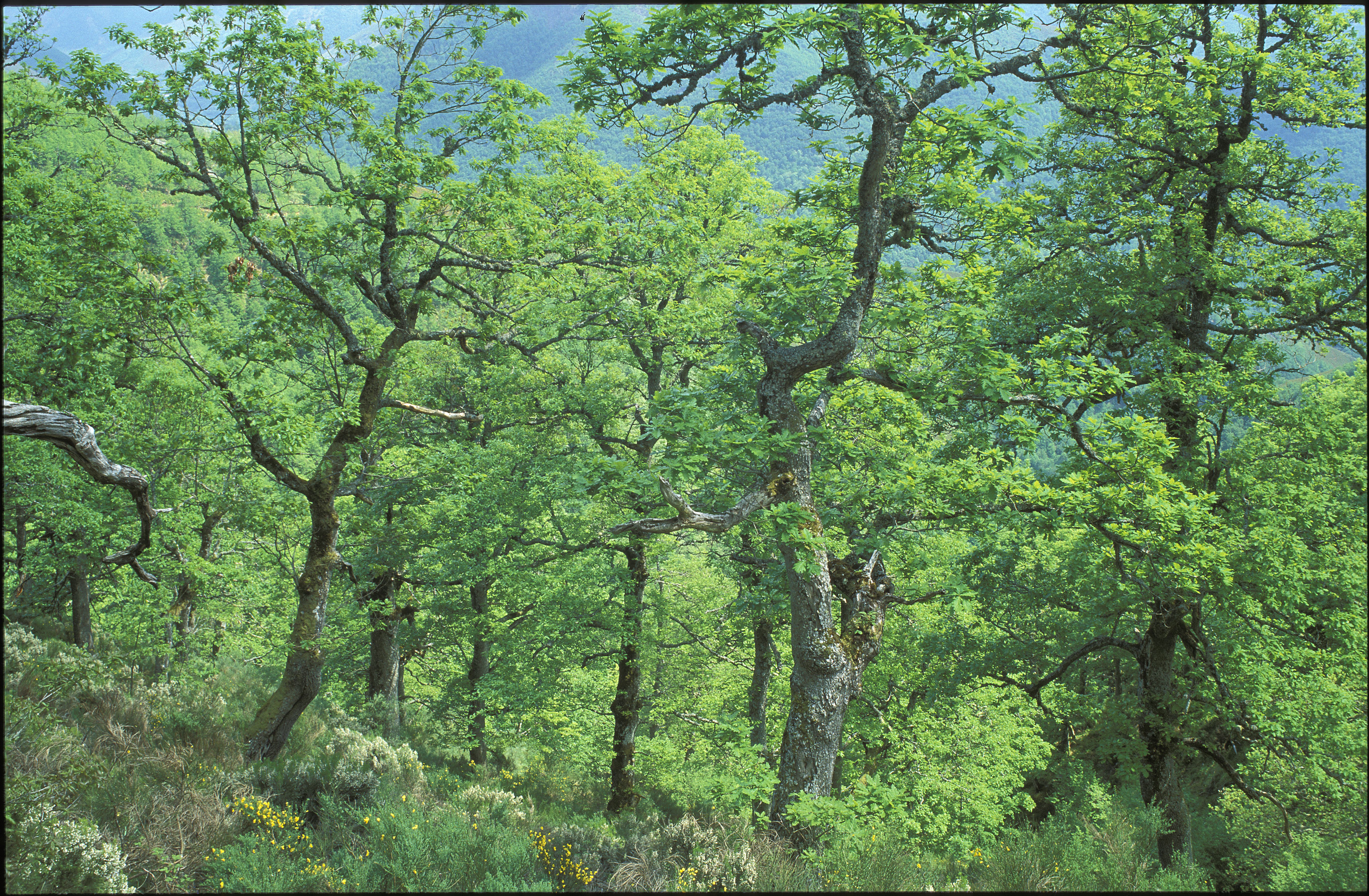 Bosques caducifolios acidófilos montanos, por lo general en áreas sujetas a una moderada sequía estival por alguna combinación de terreno abrupto, suelo rocoso, orientación sur o veranos relativamente secos y soleados (como sucede en la parte más occidental de la cordillera cantábrica, donde estos bosques, sobre todo bajo la forma de comunidades achaparradas dominadas por Quercus orocantabrica, alcanzan el límite forestal).