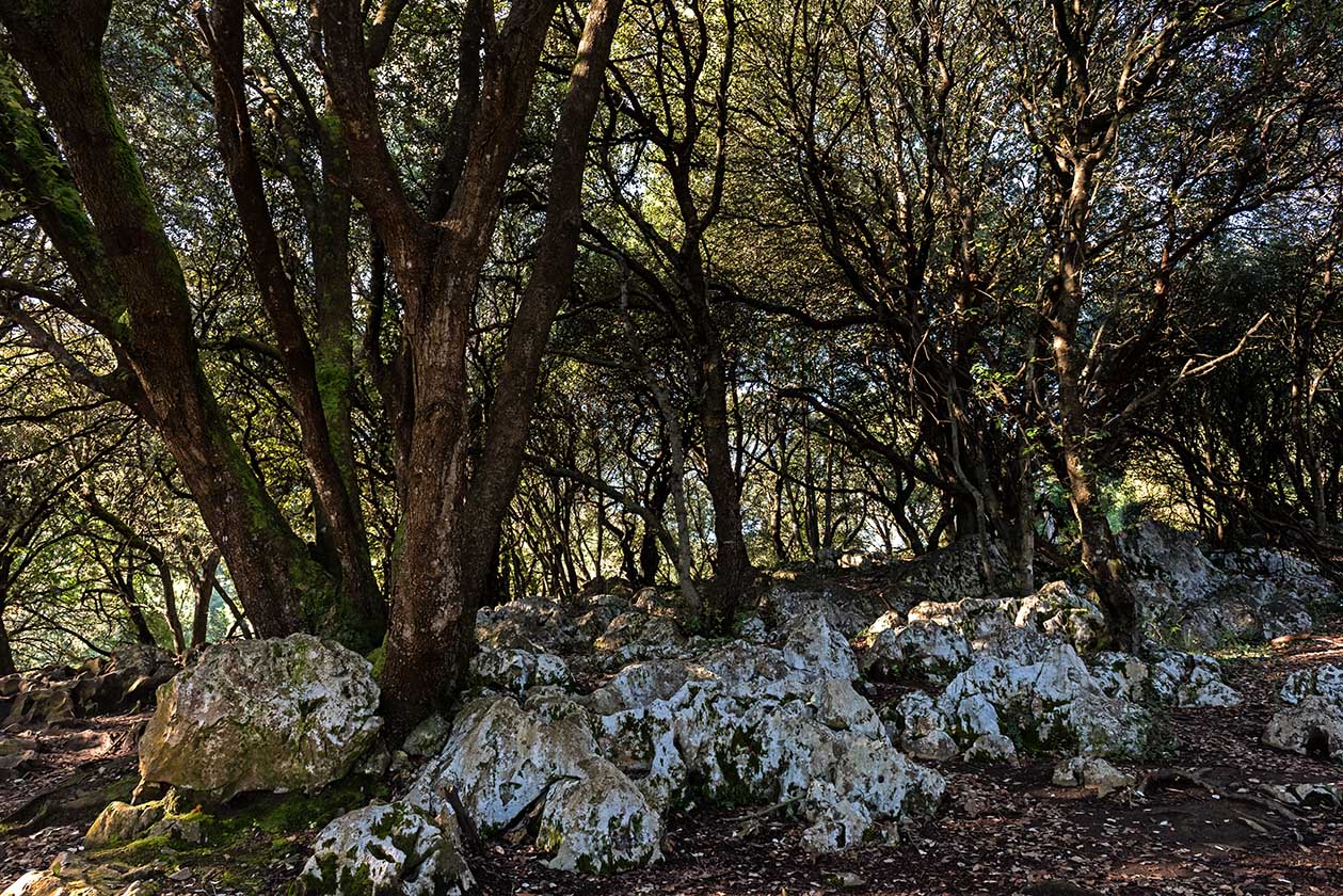 Bosques planiperennifolios más o menos esclerofilos en afloramientos de calizas karstificadas y drenantes de las tierras bajas, desde el centro de Asturias hacia el este.