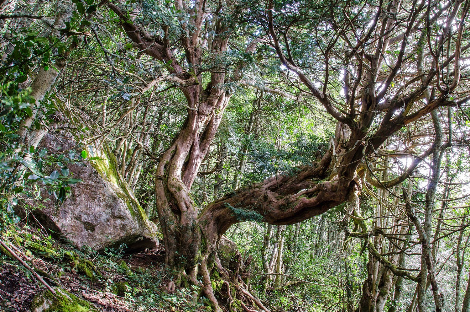 Estos bosques pueden interpretarse como una derivación, a menudo antropogénica, de bosques montanos maduros en zonas particularmente abruptas o sometidas a fuerte carga ganadera. Los tejos y los acebos, merced al follaje perenne y a las inversiones a largo plazo que este permite, soportan mejor que los caducifolios tanto las sequías primaverales ocasionales en suelos delgados como, con sus hojas espinosas o tóxicas, el persistente ramoneo del ganado.
