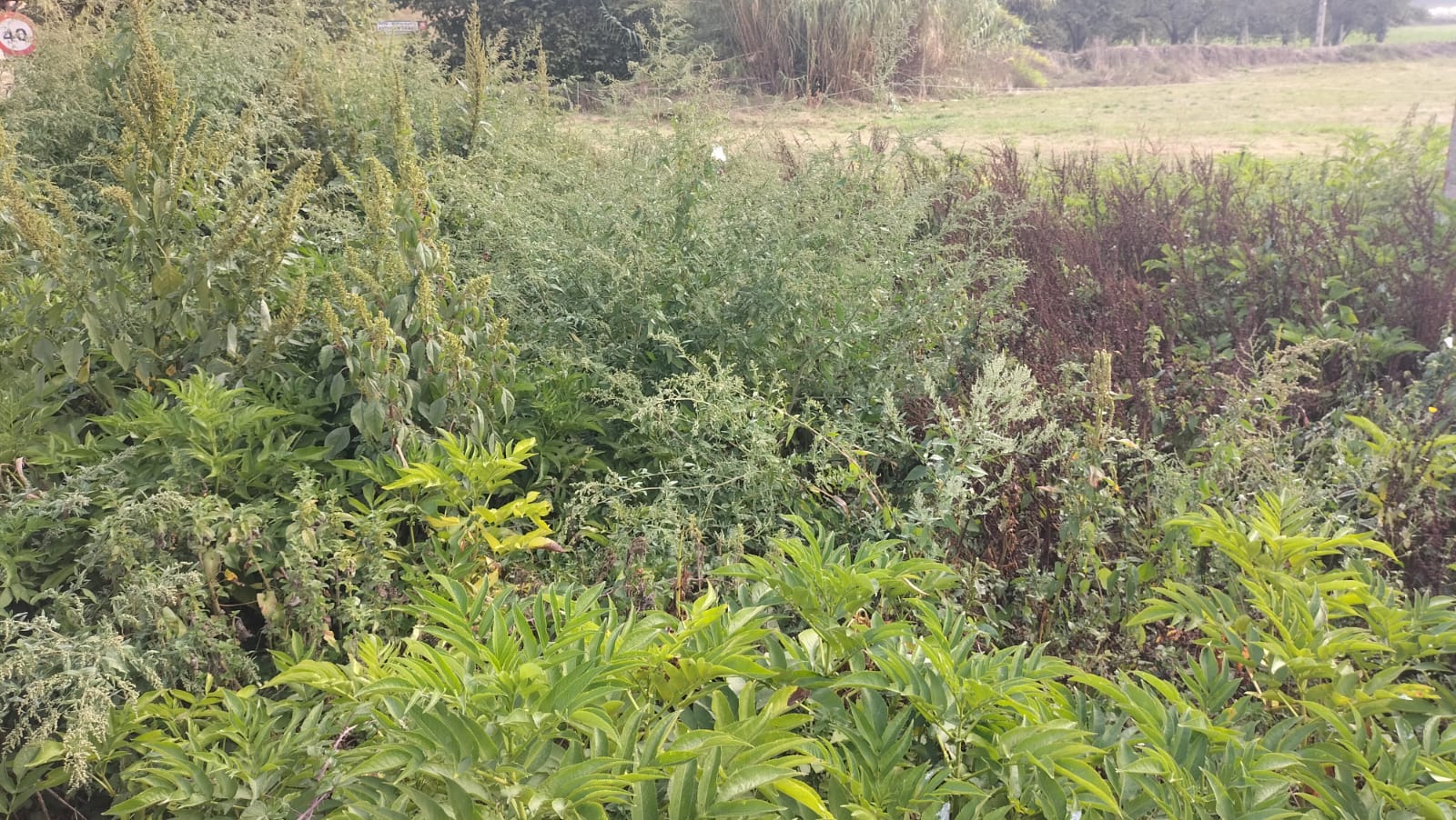 Urtica dioica 94%, Galium aparine aggr. 76%, Sambucus ebulus 72%, Rubus ulmifolius 46%, Dactylis glomerata 44%, Conium maculatum 43%, Bromus sterilis 41%, Malva sylvestris 35%, Cirsium vulgare 34%, Arctium minus 33%, Calystegia sepium 28%, Geranium dissectum 27%, Sonchus oleraceus 26%, Rumex crispus 25%, Lapsana communis 23%, Holcus lanatus 23%, Poa trivialis 20%, Geranium pyrenaicum 19%, Dipsacus fullonum 19%, Bromus diandrus 19%, Hordeum murinum 19%, Rumex obtusifolius 19%, Ballota nigra 17%, Verbena officinalis 17%, Cirsium arvense 15%, Torilis arvensis aggr. 14%, Pentaglottis sempervirens 13%, Mentha suaveolens 13%, Convolvulus arvensis 13%, Poa pratensis 12%, Ranunculus acris 11%, Lactuca virosa 11%, Rumex conglomeratus 10%, Lamium maculatum 10%, Origanum vulgare 10%, Jacobaea vulgaris 10%, Sinapis arvensis 9%, Alliaria petiolata 9%, Pteridium aquilinum 9%, Trifolium pratense 8%, Capsella bursa-pastoris aggr. 8%, Foeniculum vulgare 8%, Sisymbrium officinale 8%, Plantago lanceolata 8%, Stellaria holostea 8%, Bryonia dioica 8%, Achillea millefolium 8%, Lolium multiflorum 8%, Chaerophyllum hirsutum 7%, Picris hieracioides 7%, Elytrigia repens 7%, Tordylium maximum 7%, Echium vulgare 7%, Sonchus asper 7%, Trifolium repens aggr. 7%, Artemisia vulgaris 6%, Carduus tenuiflorus 6%, Crepis capillaris 6%, Geum urbanum 6%, Geranium robertianum 6%, Daucus carota 6%, Papaver rhoeas 6%, Pastinaca sativa 6%, Chaerophyllum aureum 6%, Schedonorus arundinaceus 6%, Veronica chamaedrys 6%, Potentilla reptans 6%, Arrhenatherum elatius 6%, Bromus hordeaceus aggr. 6%, Poa annua 6%, Marrubium vulgare 6%, Brachypodium pinnatum 6%, Heracleum sphondylium 6%, Rumex pulcher 6%, Avena barbata 6%, Clematis vitalba 6%, Vicia sativa aggr. 6%